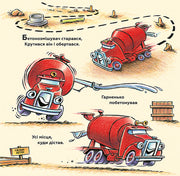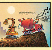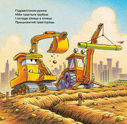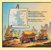 Продовження улюбленої історії про великі будівельні машини: від ранкового підйому й заправки до робочого дня на будмайданчику. Яскраві ілюстрації та простий, ритмічний текст допомагають дітям зрозуміти процес будівництва та цінність співпраці. Книга підходить для найменших читачів і може бути використана як під час денних читань, так і перед сном.
