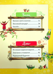 Казкові історії про звірят і птахів, які святкують і пізнають світ у кожну пору року. Весна приносить пташиний концерт, літо — змагання з плавання й варення, осінь — ярмарки й щедрі дари природи, а зима — веселощі на санчатах і родинні свята. Теплі оповідання навчають дружбі, взаємодопомозі та цінності сімейного тепла.
