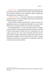 Книжка не про буддизм як релігію, а про практики та підходи, що допомагають справлятися з труднощами: авторка пропонує 37 кроків, вправи, ілюстрації та навіть посилання на музику, які можуть покращити психічний стан і ставлення до життя. Авторка поєднує буддійську мудрість із сучасними психологічними підходами та власним досвідом коуча.
