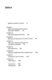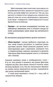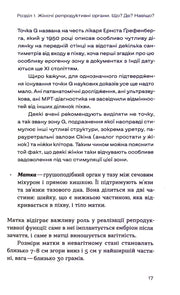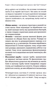 Книга гінекологині Оксани Негрич, у якій простою й доступною мовою пояснюється будова та робота жіночої репродуктивної системи. Авторка відповідає на питання про гормони, менструацію, ПМС, овуляцію, секс, контрацепцію, інфекційні захворювання, інтимну гігієну та поширені міфи, дає поради щодо самообстеження і роз'яснює, коли варто звертатися до лікаря.